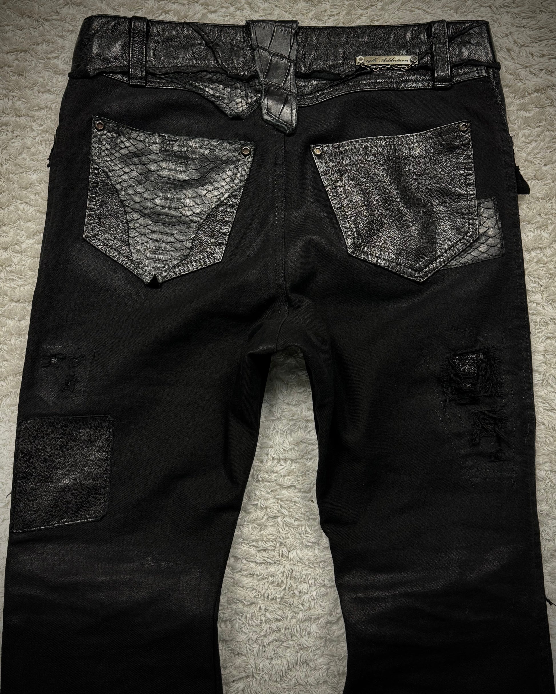 14th Addiction “Coyote 03” Python Leather Repaired Flared Pants