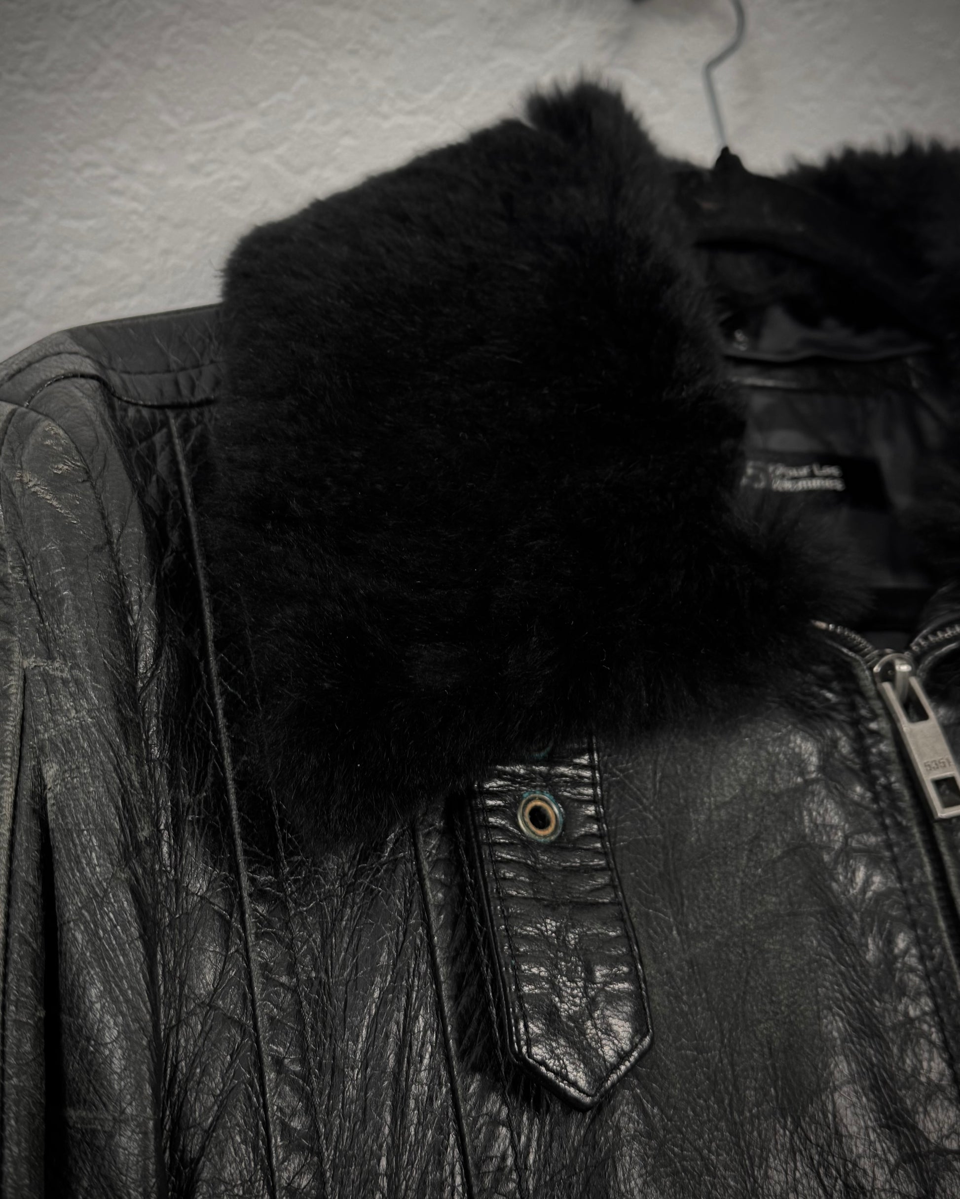 5351 Pour Les Hommes Fur Collar Textured Leather Jacket