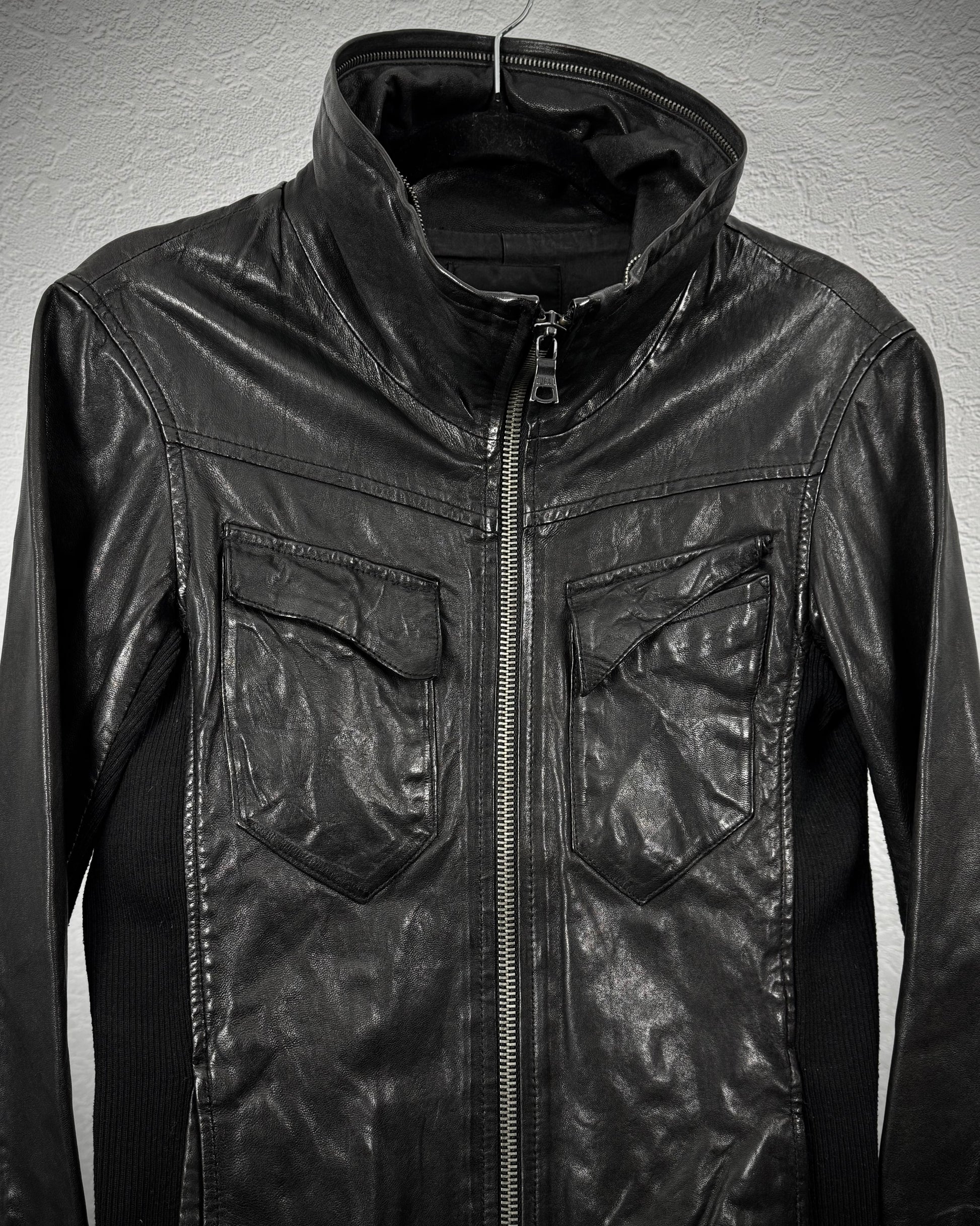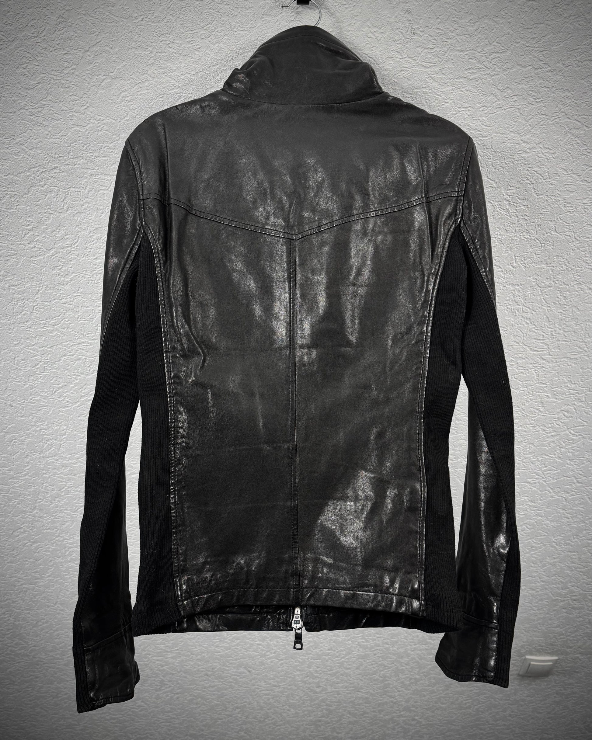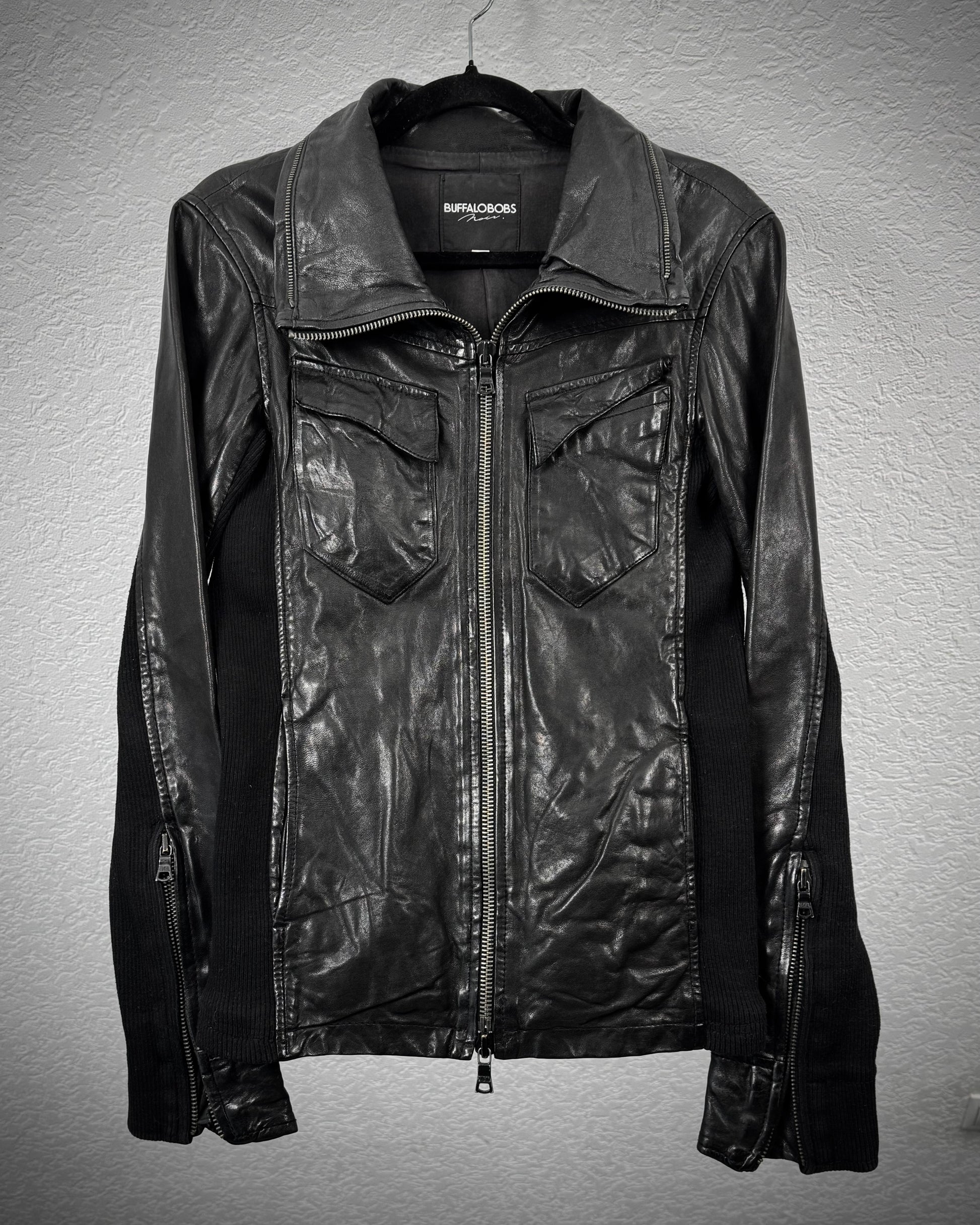 Buffalo Bobs Rib Knit High Neck Leather Jacket