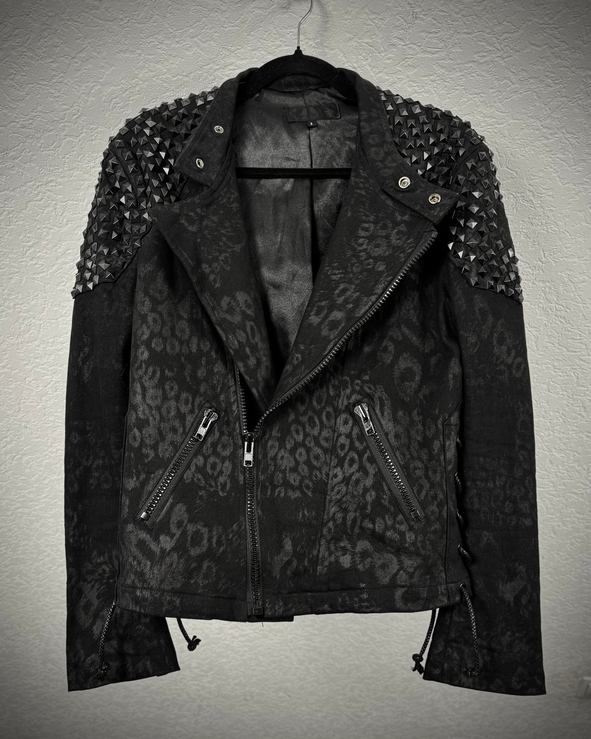 By The R Leopard Waxed Studded Lace Up Biker Jacket