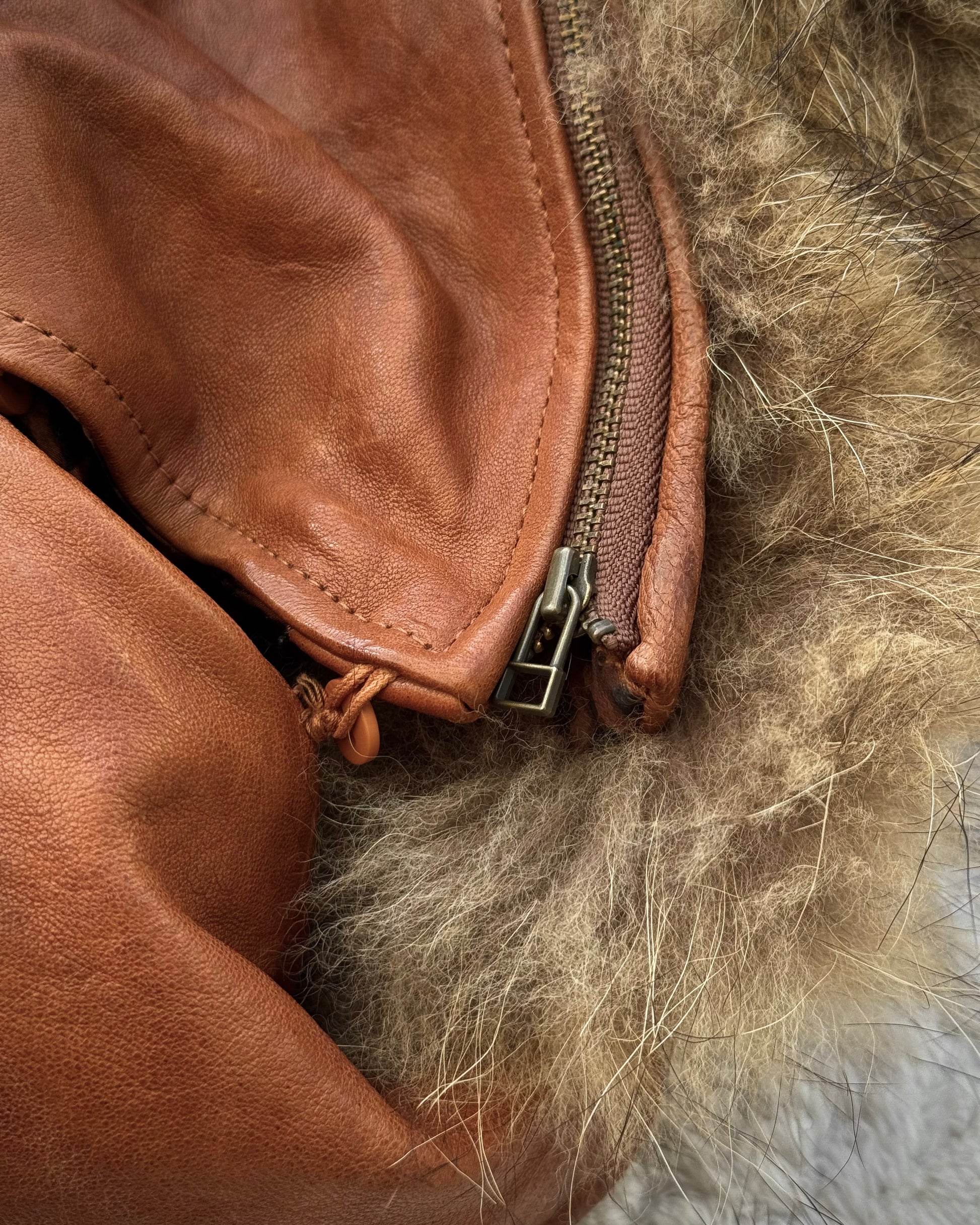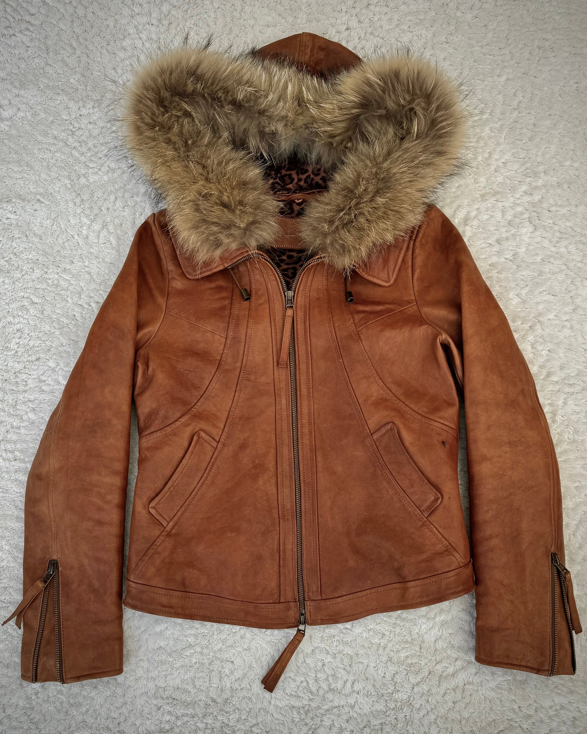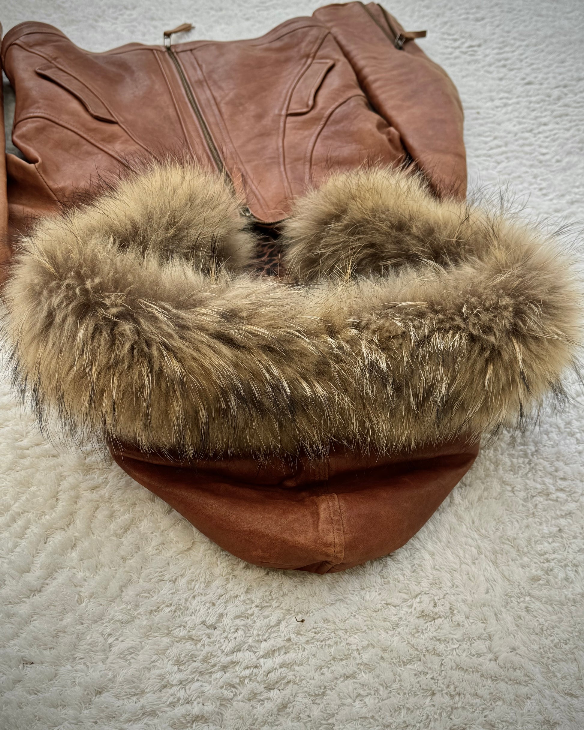 G.O.A Raccoon Fur Vintage Leather Jacket