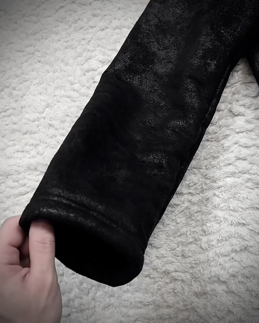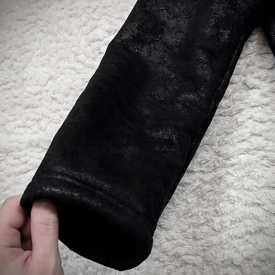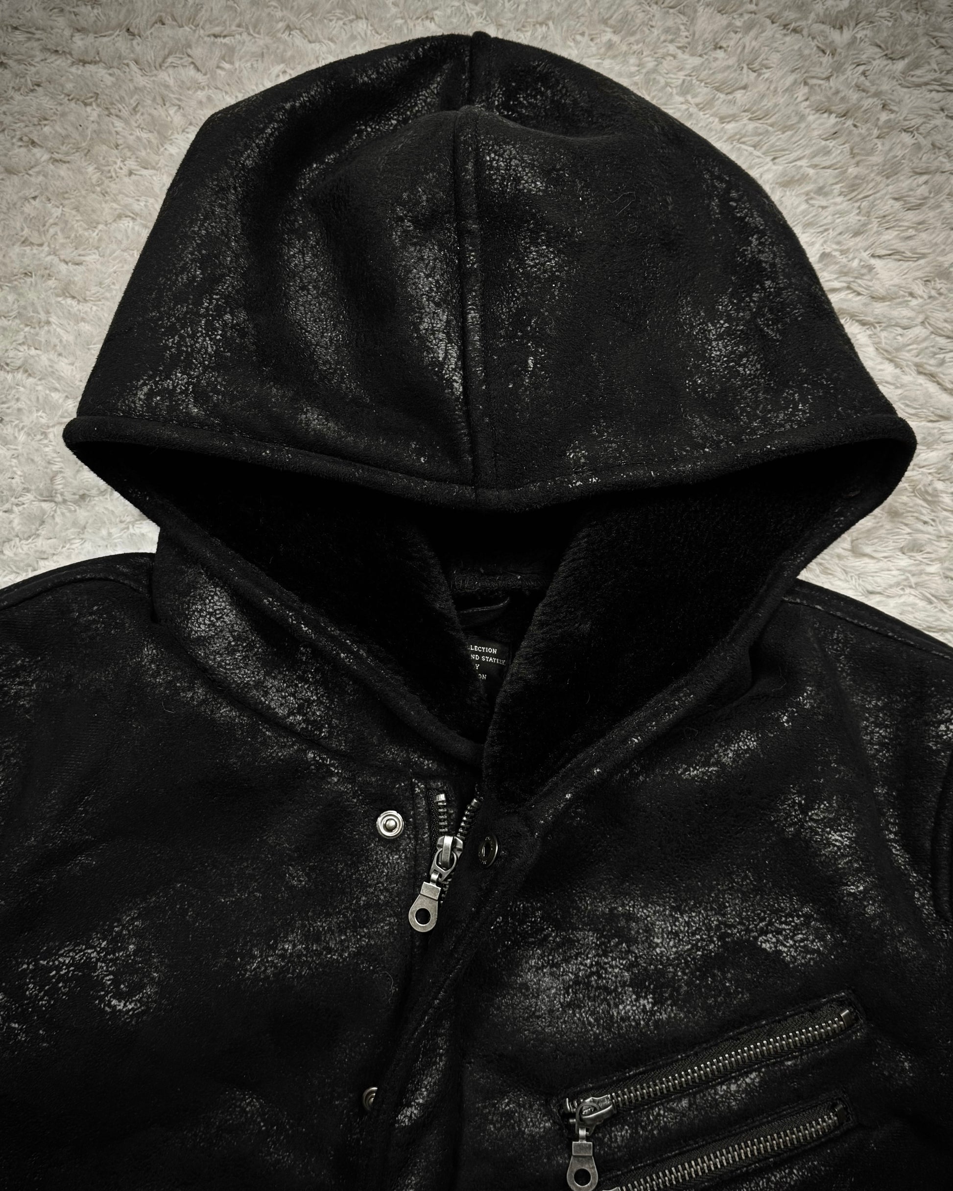 This zip-up hoodie from Louis Chavlon features a cracked wax finish that creates a subtle luster effect and reflects depending on the lighting.