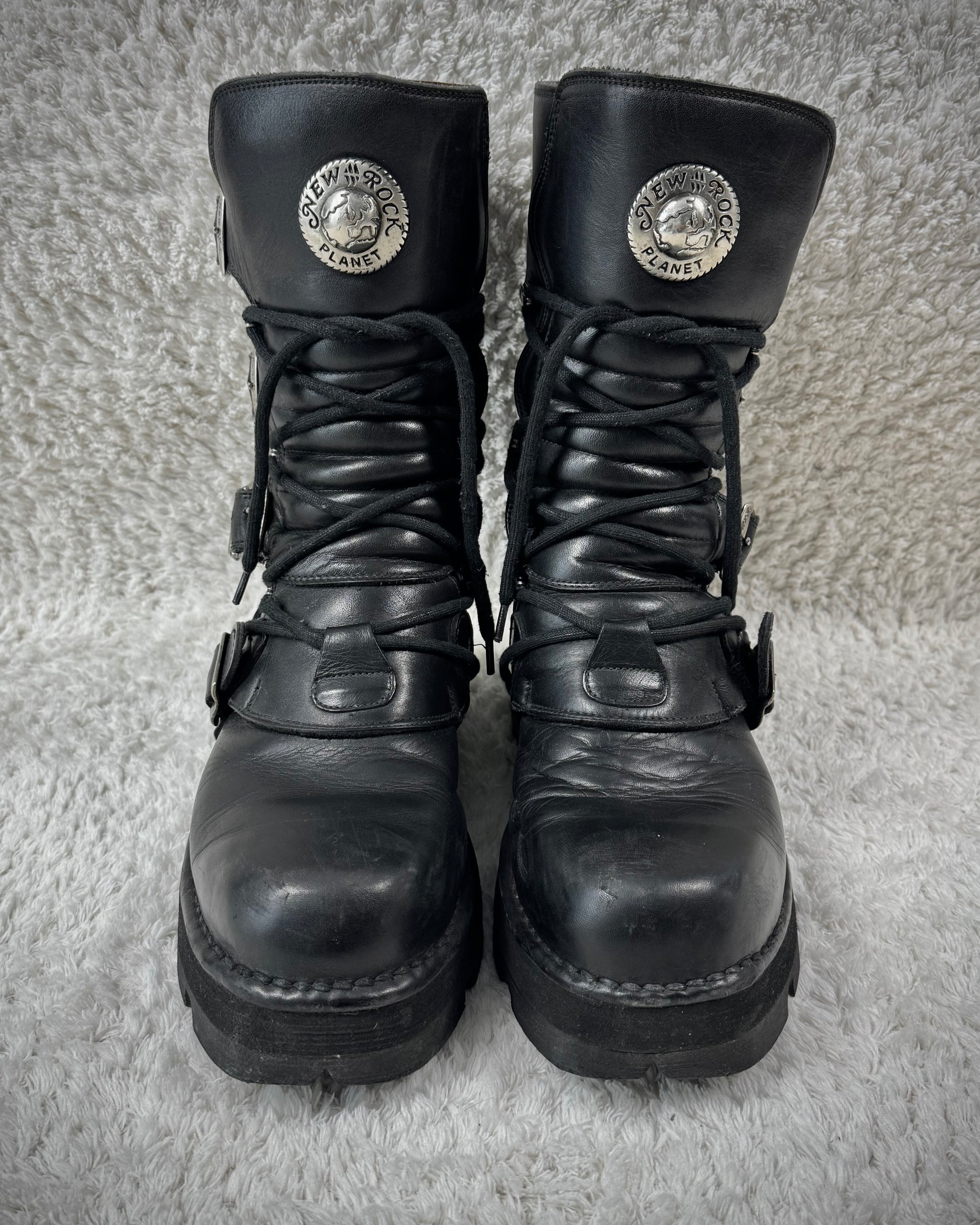 New Rock Laced Steel Heel Leather Boots