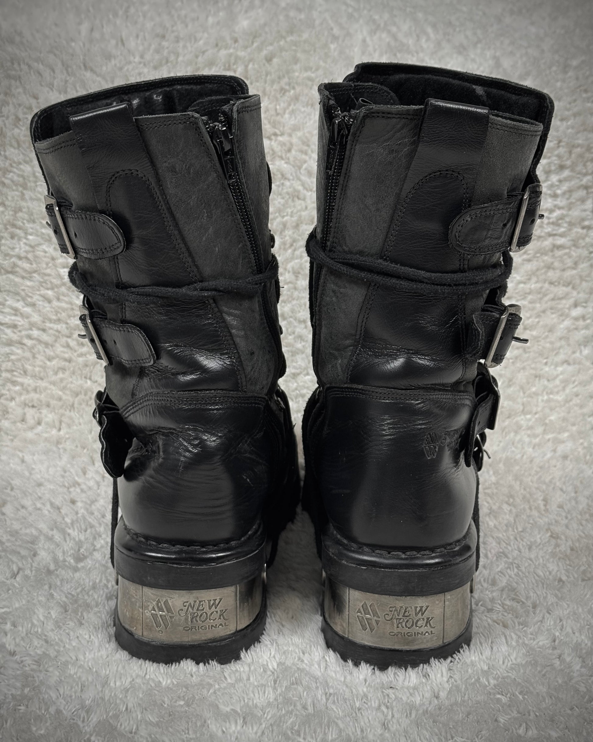 New Rock Laced Steel Heel Leather Boots