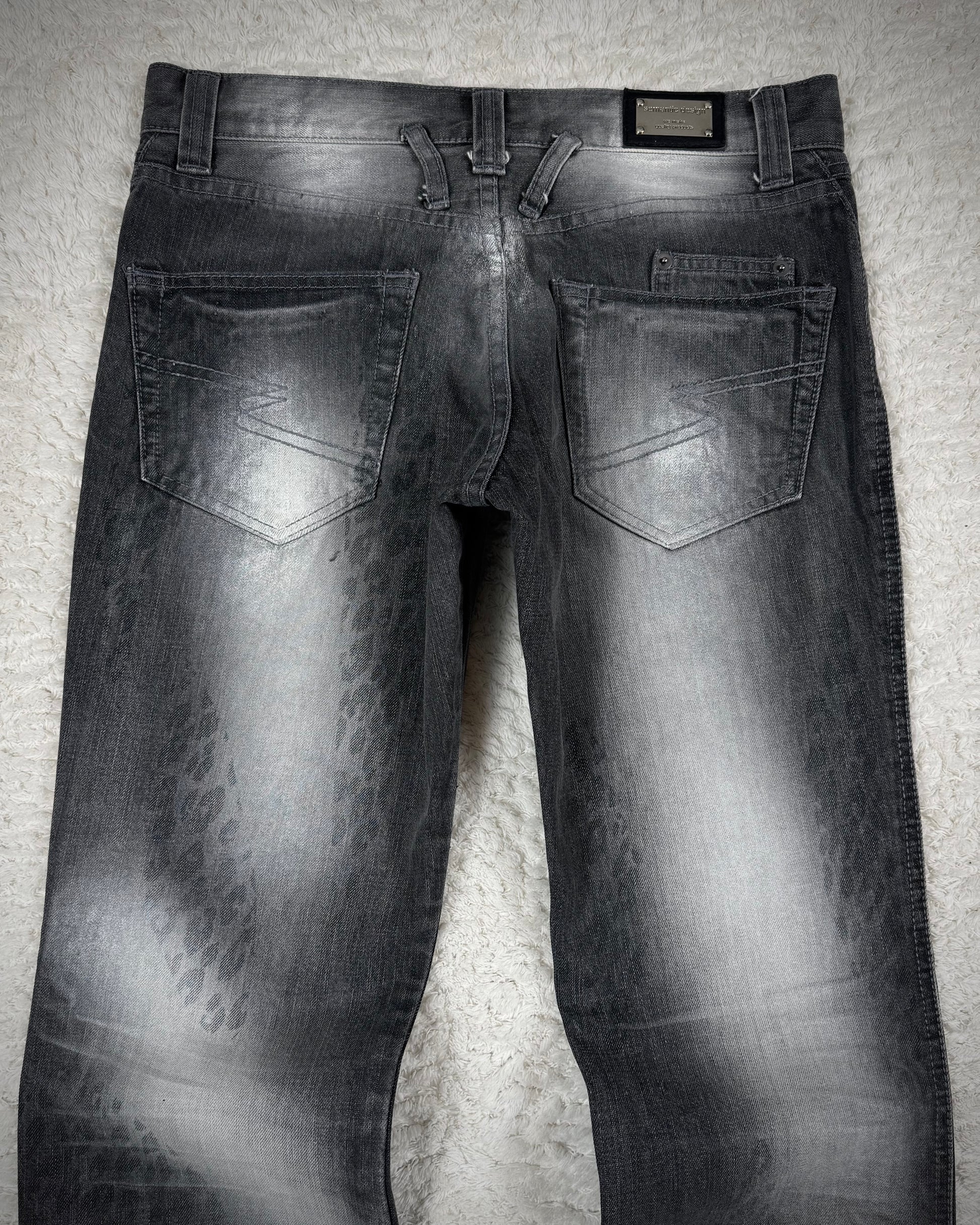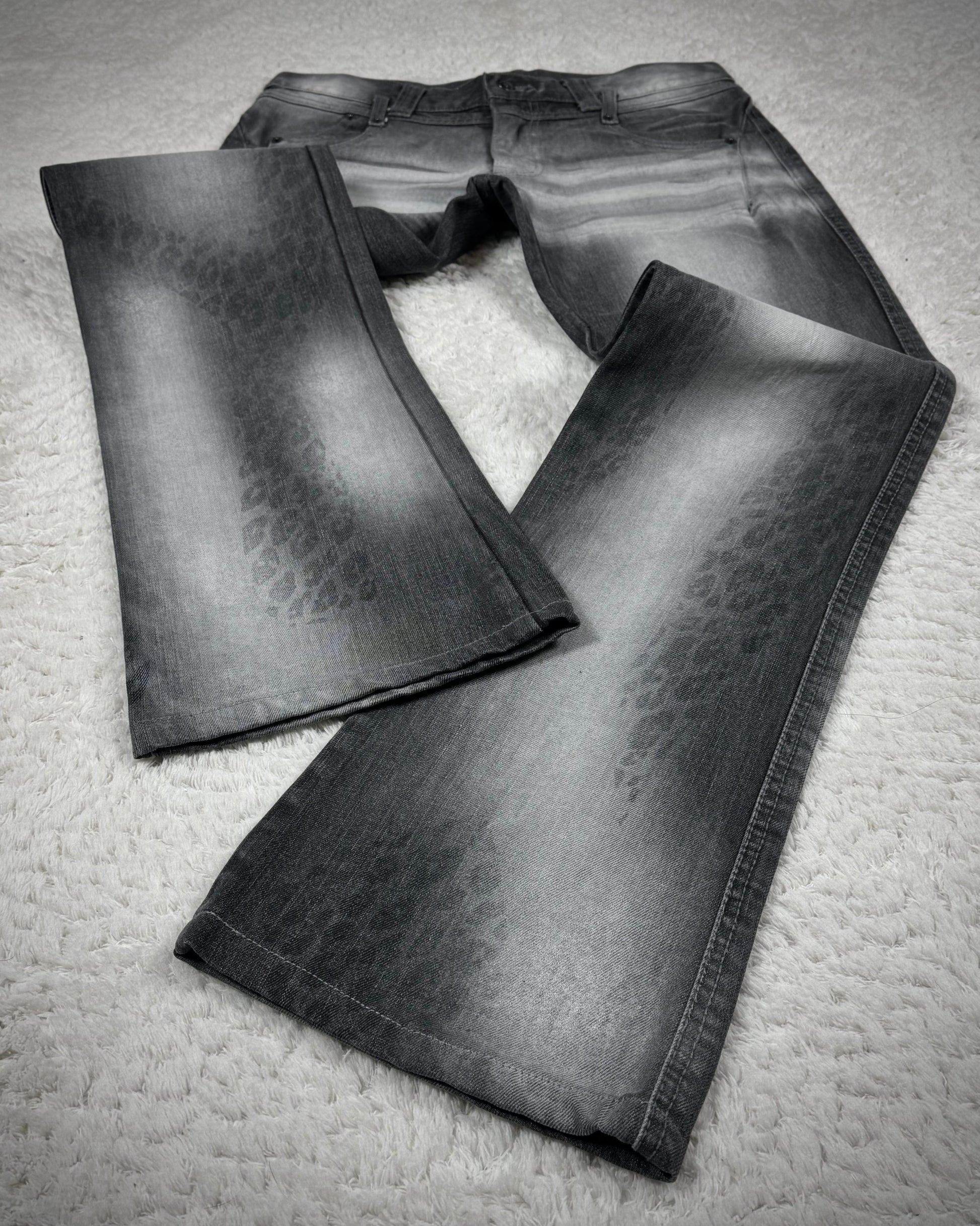 These flared jeans from Japanese brand Semantic Design feature a subtle leopard printed pattern and a whisker wash.