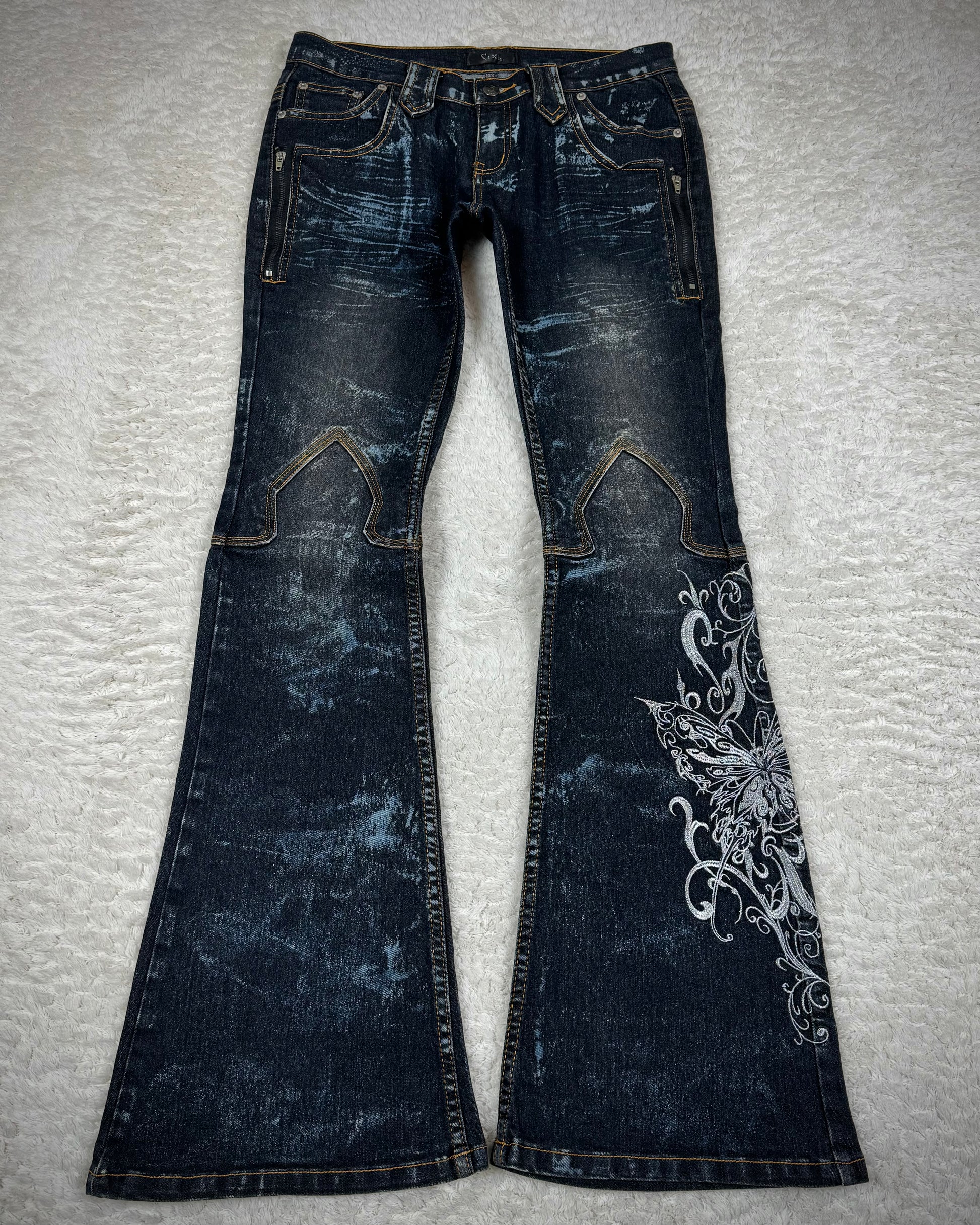 Sixh Tribal Tattoo Embroidery Flared Jeans