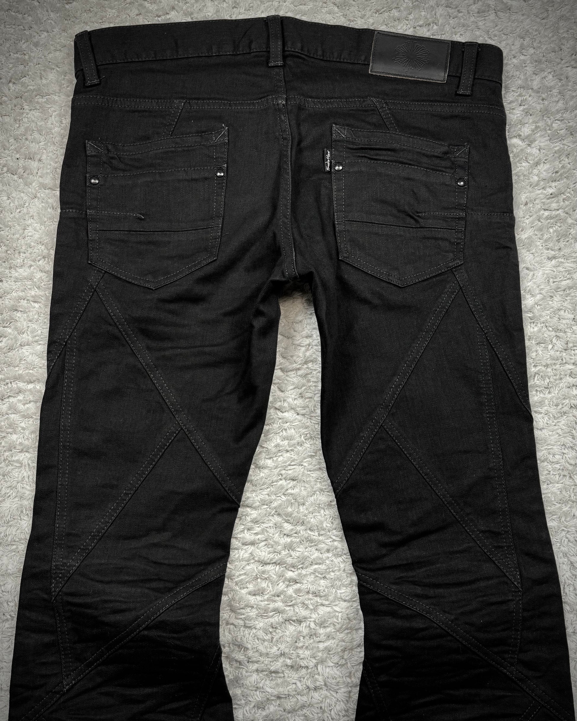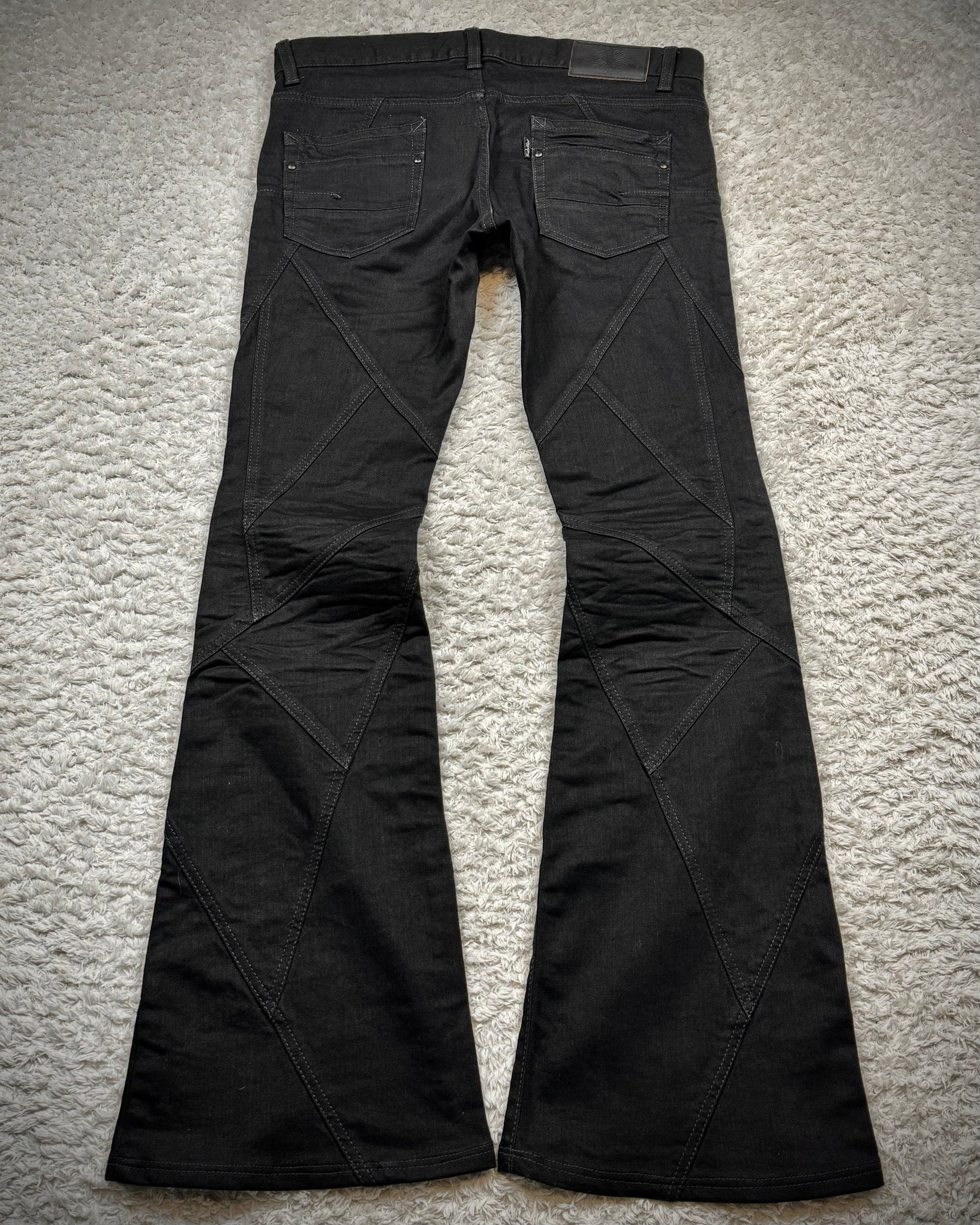 These flared jeans from Japanese brand Tornado Mart are constructed from deep black denim panels joined with clean seams. They feature a pronounced flared silhouette.