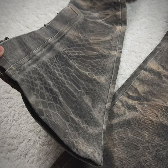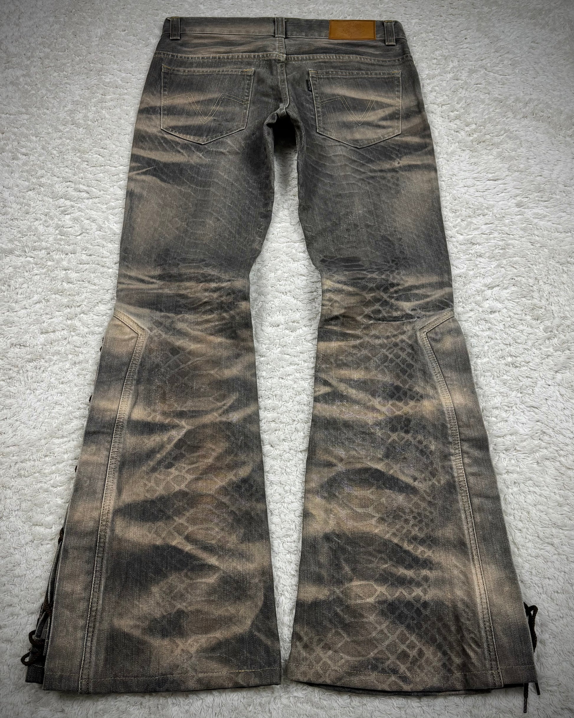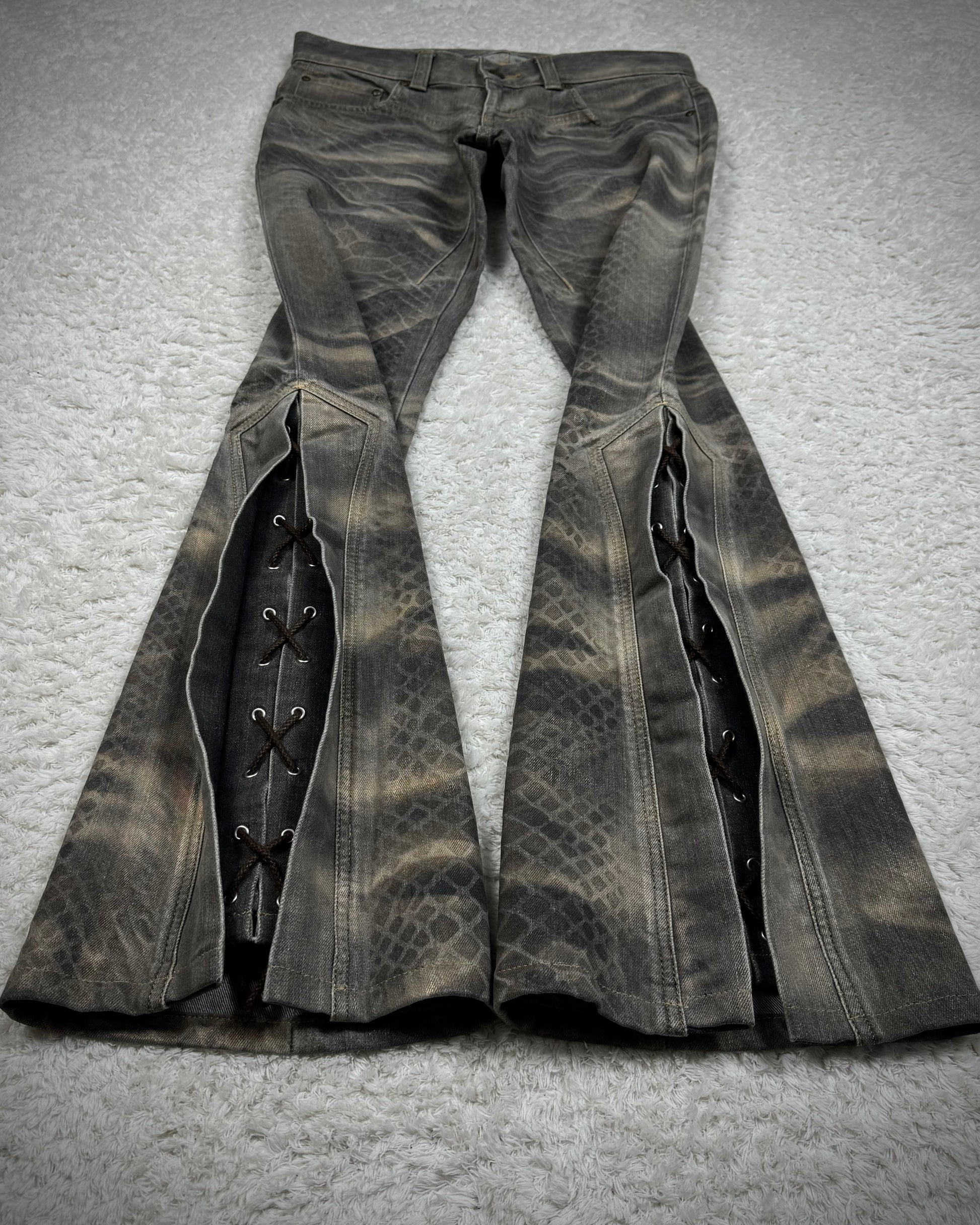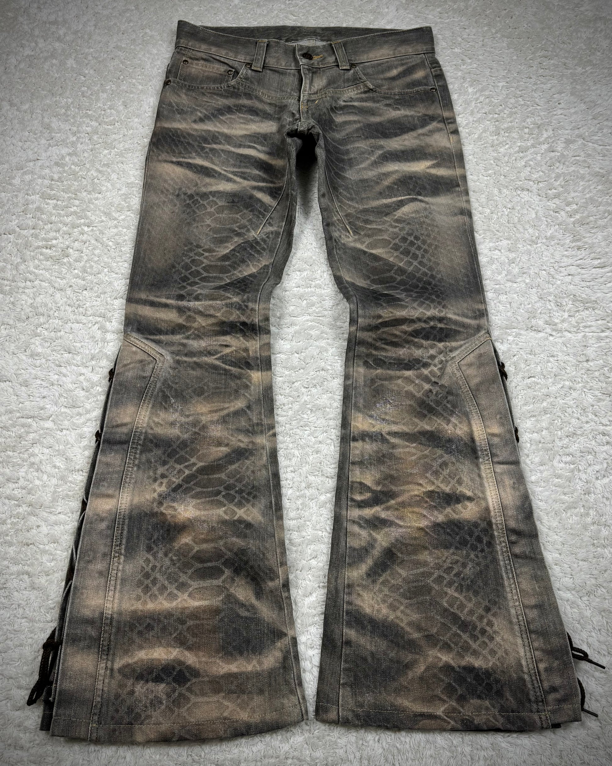 Tornado Mart Python Waxed Lace Up Flared Jeans