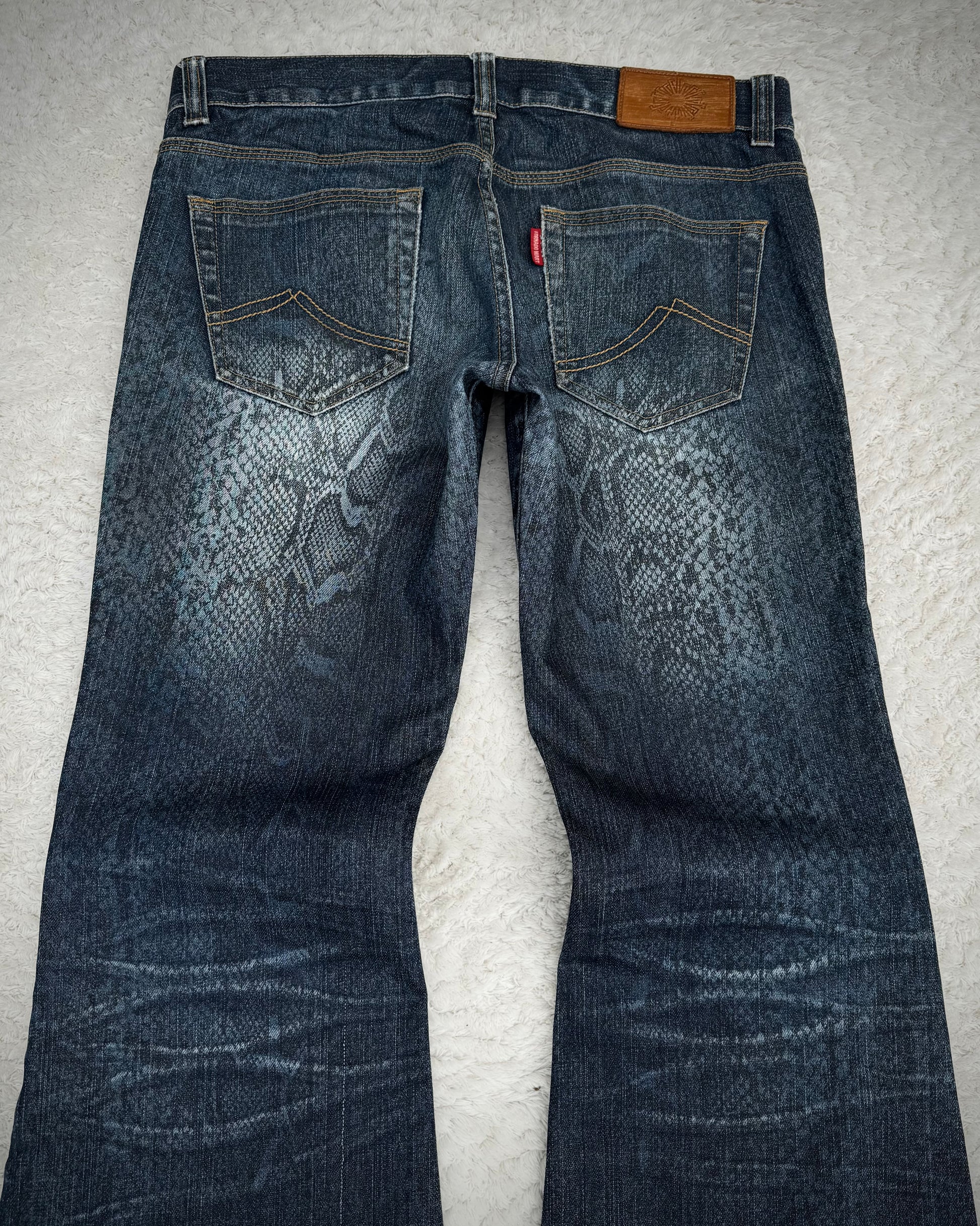 Tornado Mart Snakeskin Pattern Flared Denim