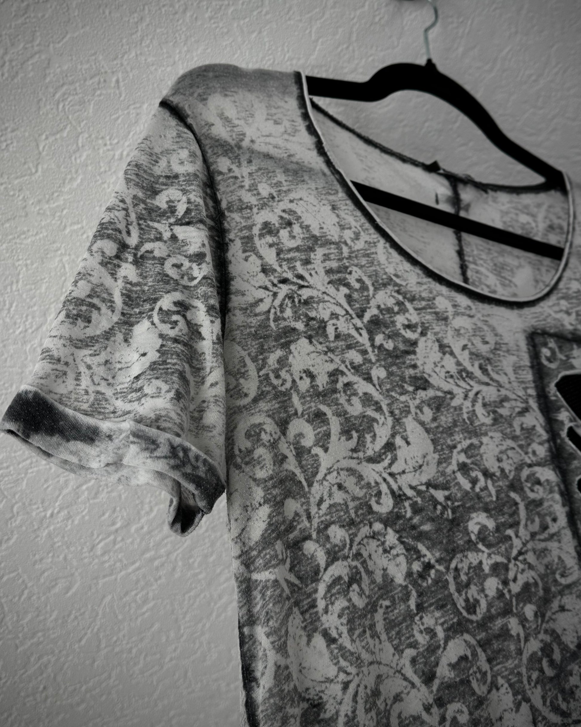 This t-shirt from TRBC features layered distressing with a ghost-faded effect. The design includes a floral tribal pattern and raw finishing.